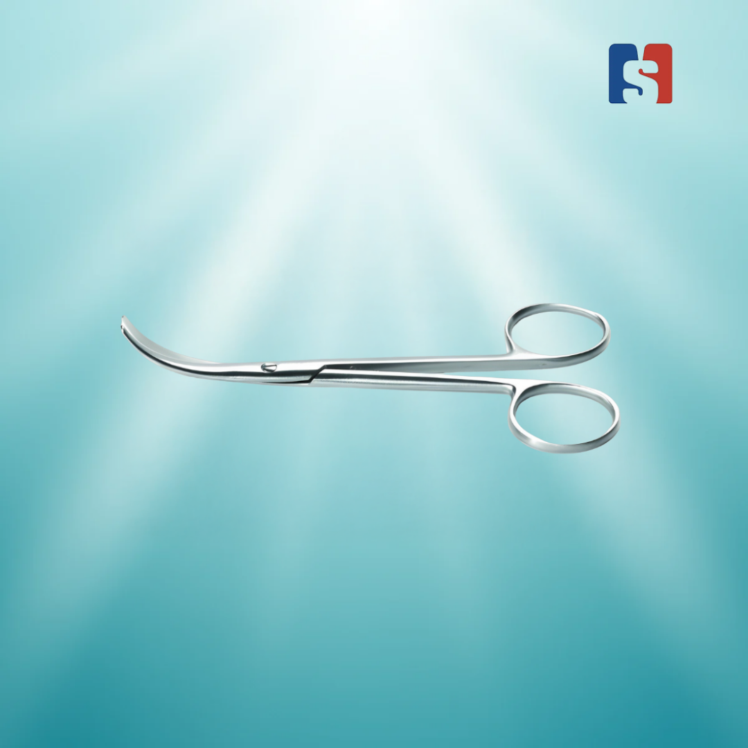 Enucleation scissors are a specialized surgical instrument designed by Modern Surgical MS-555 used for the complete removal of the eyeball from its socket. They are a key tool in the enucleation procedure, which is performed to treat severe eye trauma, tumors, or a blind and painful eye. The scissors are characterized by their curved, heavy blades and blunt, rounded tips.