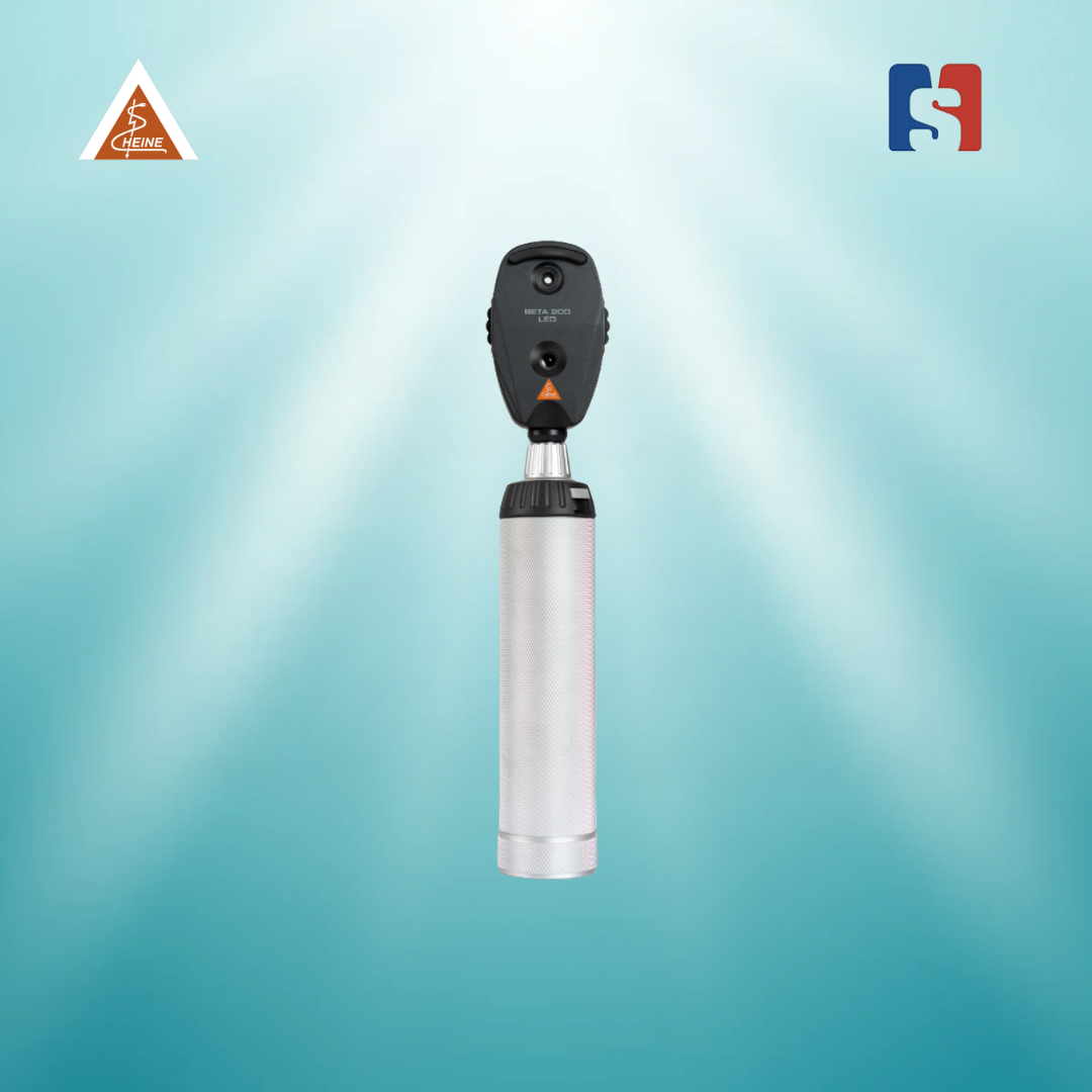 The HEINE BETA 200 LED Ophthalmoscope, combined with a large battery handle, represents a pinnacle of German engineering in direct ophthalmoscopy. It features HEINE’s advanced LED HQ illumination, delivering brilliant, homogeneous light with exceptional color rendering (CRI >90) for the most accurate depiction of the fundus.
